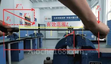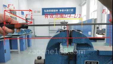 短程锉削(见图12)时,由于使用锉刀有效范围较小,则L1和L2大小在交替变化范围较小,前后手向下施力大小F2、F1相应交替变化范围也较小。所以相对于全程锉削,精度较高,效率较低。