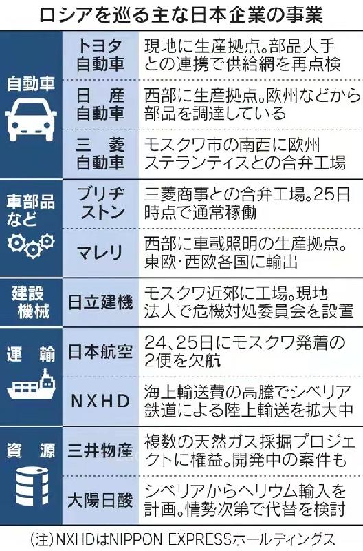 这些日企多数集中在圣彼得堡等西部,至少有1成以上在当地设有制造基地,除了丰田,日产、马自达等制造商也在当地设有工厂。日产负责采购的高管表示,目前该公司在俄罗斯的供应链并没有出现问题。