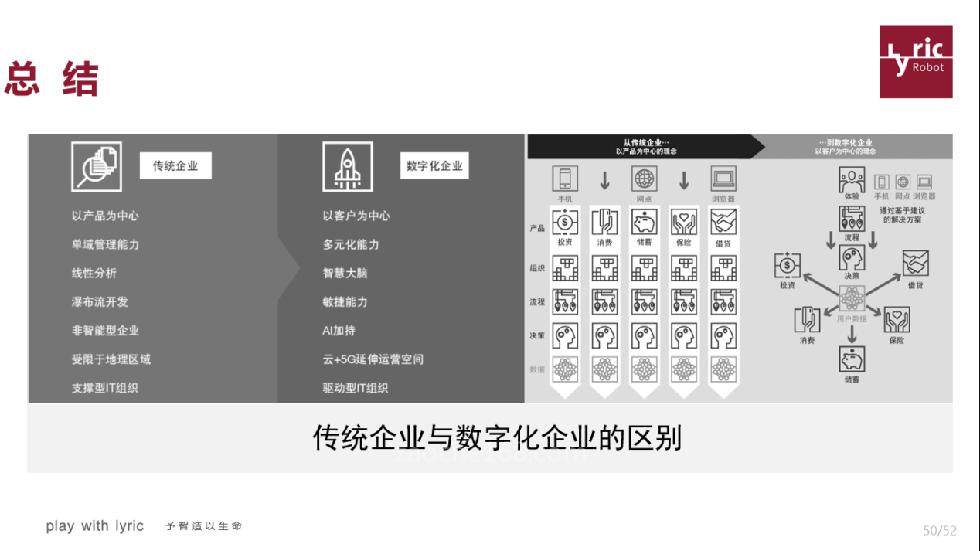 传统企业和数字化企业的区别在于过去是以产品为中心,但是数字化企业不能这样,将来必将以客户为中心。因此就有了这样的转变,包含了以客户为中心的集中式的变化,以客户的痛点为方案提供方的关切点。