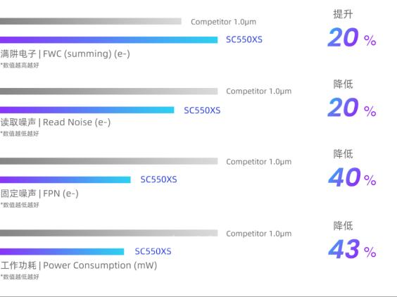此外,与业内同类产品相比SC550XS的满阱电子提升了20%,读取噪声与固定噪声分别大幅降低了20%与40%,在暗光性能出色的同时进一步提升成像的细腻质感。