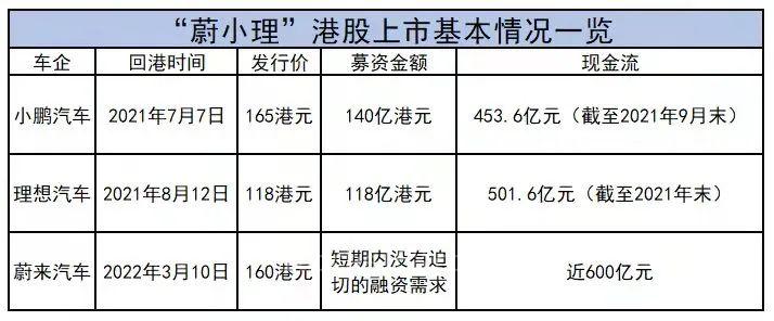 与此同时,蔚来还强调,公司目前拥有充足的现金储备,短期内没有迫切的融资需求。为此,蔚来还披露了目前的资金状况,截至2021年9月30日,蔚来现金储备共计约470亿元人民币。同年11月,蔚来还通过美股ATM增发(At-The-Market Offering),筹集了约156亿港元的融资。而这个数字和小鹏、理想赴港募资额相当,分别为140亿港元和118亿港元。