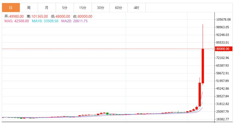 3月8日,伦镍继续疯狂,涨幅甚至达到了110%,创下了101365美元/吨的历史天价,两日累计涨幅超过230%。