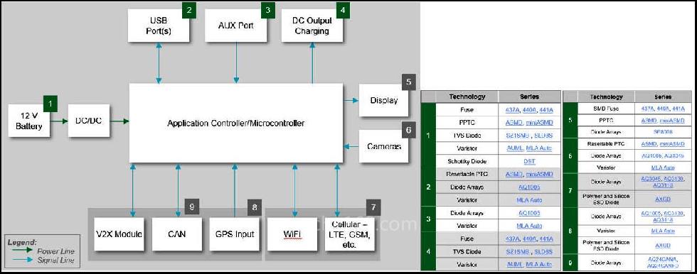 汽车ADAS控制器系统电路保护框图及对应产品系列