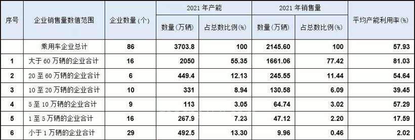以上数据也表明,国内超过半数的乘用车企业产能利用率均低于行业平均水平,车企产能利用率分化趋势明显,呈现强者愈强、弱者愈弱的状态。