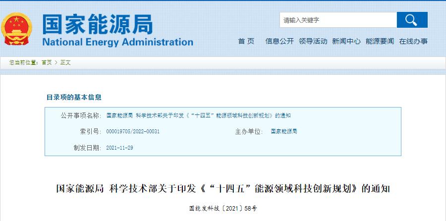 4月2日,国家能源局、科学技术部发布关于印发《“十四五”能源领域科技创新规划》的通知。