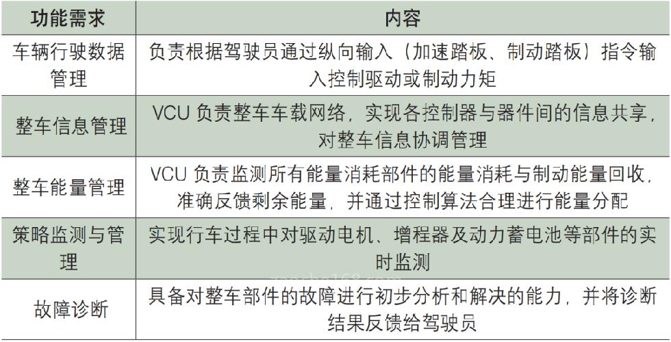 增程式电动汽车整车控制系统设计关键考虑功能需求、主要技术指标与控制信号类型,依据能量管理策略对增程器、驱动系统及动力电池等工作统一协调,从而使整车达到良好的经济性和动力性。