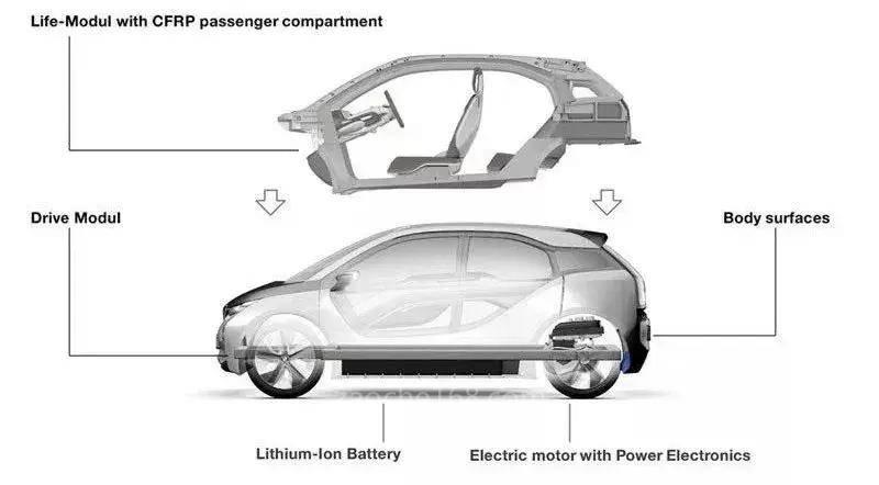 i3和i8两款车型,都使用了“LifeDrive”的模块化架构,Life就是驾驶员座舱,而“Drive”则代表底盘部分,包括了传动系统和锂离子电池等。