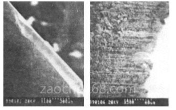 车削精加工淬火轴承钢磨损形式多样,主要表现形式为:前刀面磨损、后刀面磨损、微崩刃、剥落以及破损等。不同的磨损形态是由不同的因素引起的。下面为前刀面和后刀面磨损规律及影响因素。