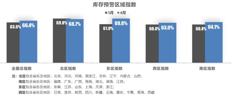从区域指数情况看,因上海、吉林等地疫情高位,北区、东区指数较高接近70%。北区指数为68.7%,东区指数为69.8%,西区指数为63.0%,南区指数为64.1%。