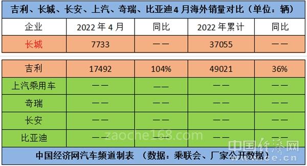 在海外业务方面,仅有长城和吉利公布了最新的数据,两家企业在4月的销量分别为7733辆、17492辆;前4个月的累计销量分别为37055辆、49021辆。其中,吉利还详细地公布了同比变动情况。尽管在海外市场上的表现暂时落后于先行布局的其他品牌,但长城和吉利并没有藏着掖着,而是坦然地公开每月的数据。