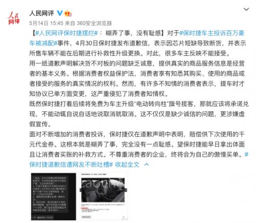 望保时捷能早日拿出体面且让消费者买账的补救方式。不尊重消费者的企业,终将会为自己的傲慢买单。
