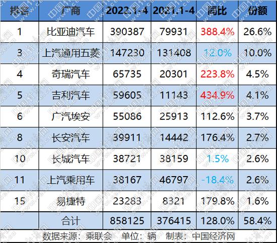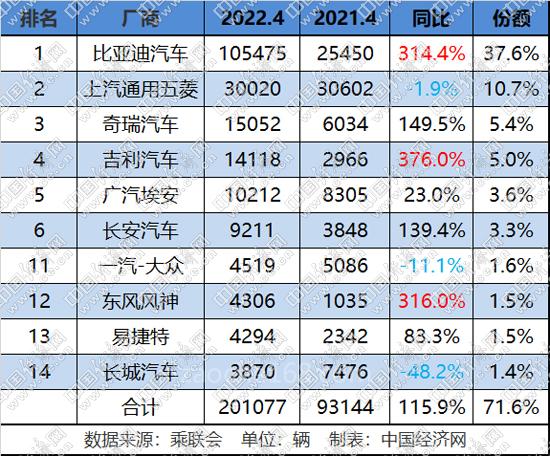 其中一个很关键的因素是特斯拉未能上榜。4月,特斯拉中国销量骤降至1512辆,同环比降幅分别为94.15%、97.7%,出口更是为0。受疫情影响,特斯拉上海超级工厂一度停工停产,尽管从4月19日起已复工复产,但仍在较大程度上受制于供应链协同。特斯拉上个月发布财报称,上海超级工厂受疫情影响损失了一个月的产量(约5万辆),不过仍预计第二季度产量将与一季度相当。