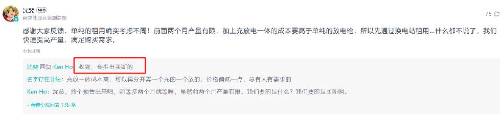 随后,蔚来能源高级副总裁沈斐表示,单纯的租用确实考虑不周,后续会推出买断方案。