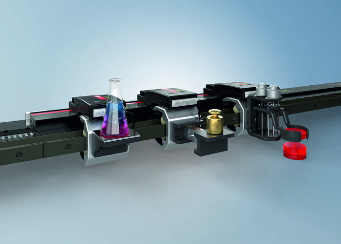 • 动子变成一个带电机驱动的夹具、电磁铁或真空吸盘的移动搬运系 统,可以取放、输送、整理和码垛产品