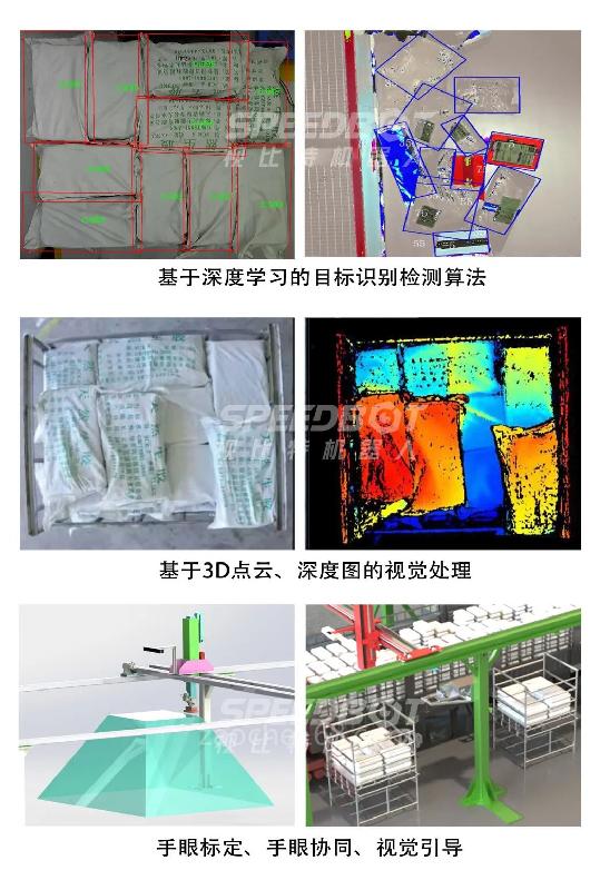 本产品结合视比特自主研发的SpeedML平台,支持物体识别小样本训练,可实现数千种SKU包装袋、蛇皮袋、百货商品、快递包裹、工业零件免注册、智能识别定位及缺陷检测等功能。结合2D/3D视觉和深度学习的优势,全面提升在智能自动化装卸系统的识别效果、准确性以及抗干扰能力。