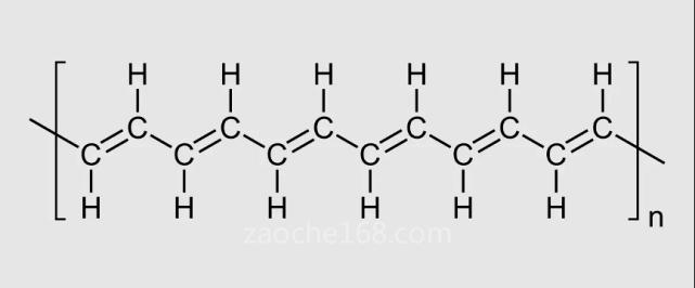 ▲聚乙炔结构图,显示碳原子和氢原子之间的单键和双键