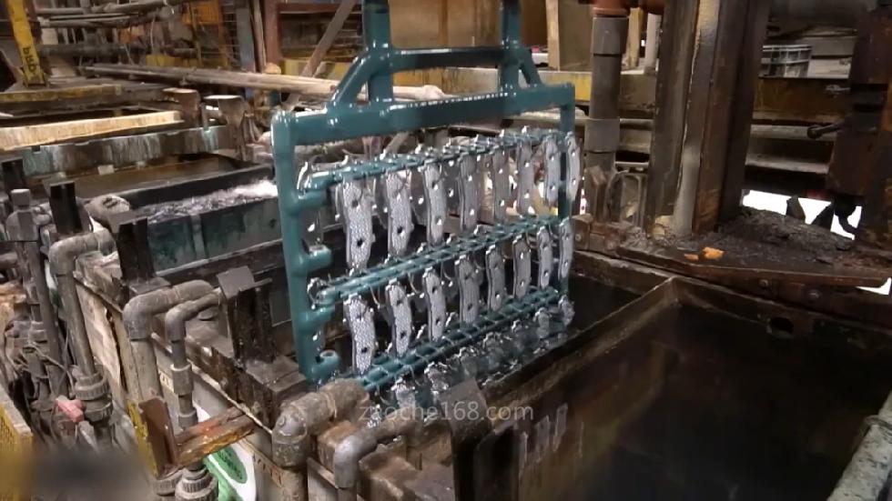 接下来就需要进行镀锌处理,目的是防止刹车片支撑板生锈。镀锌工艺结束后,将摩擦片安装到支撑板上面,整个刹车片就完成了。