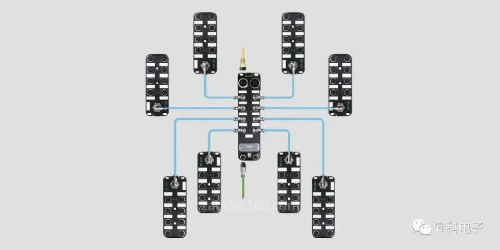 不同型号的网关支持诸如Profinet、EtherCAT等多种总线协议,可以轻松连接不同的PLC系统。每个网关最多可提供8个扩展接口,高达1Mbps的扩展连接速度,降低通讯信号传递的延时时间。每个扩展I/O模块最多可连接16个输入输出信号,并可以提供信号点的短路保护及诊断上传功能,与网关连接支持热插拔功能,即插即用。