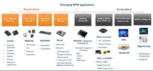 作为占半导体芯片行业大约30%的存储器件,其需求增长速度是快于半导体行业的。是什么在拉动存储器件的市场需求?目前来看,类似于5G、物联网、云存储等主流应用将继续成为传统存储市场的助推器;电动车市场的爆发推动了汽车电子市场对于存储的需求;可穿戴医疗应用又对于存储的尺寸、功耗和品质提出极为苛刻的要求;人工智能的快速崛起则将传感、存储和运算牢牢地绑在了一起。这些新兴的应用场景无疑将要更加依赖于嵌入式存储的技术发展。