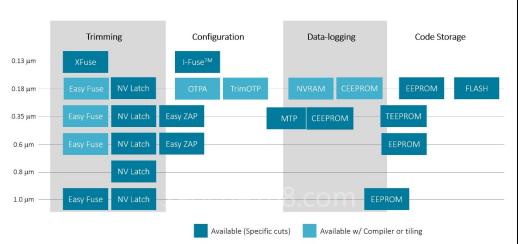 图 | X-FAB嵌入式非易失性内存(e-NVM)解决方案组合