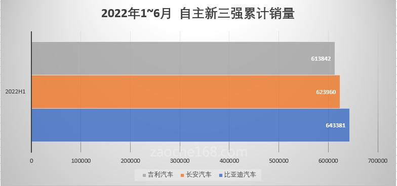 5月比亚迪刷新自身的最高纪录达到11.4万辆,接着6月更是达到13.4万辆,这也使得其连续3个月获得自主品牌的榜首之位。上半年下来,比亚迪的总销量达到64.3万辆,超过吉利和长安一个身位。