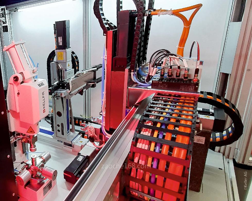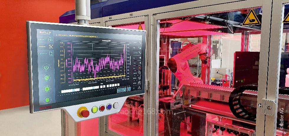 压印是传感器隔离膜片生产过程中一个不可或缺的的中间加工步骤,凯乐公司项目经理 Florian Wernli 解释道:“我们的大部分压力传感器都封装在充油不锈钢外壳中。隔离膜片对于通过油将周围介质的压力传输至传感器内的测量芯片中来说至关重要。”这就需要通过一台性能强大的自动压印机将隔离膜片压印成特殊的形状。凯乐公司开发与生产装备部 Bruno Thalmann 补充道:“在经过泄漏检测、用压缩空气清洁和热平衡处理后,我们在同一工艺步骤中使用氢传感器在高压条件下进行压印并进行确定性泄漏试验。随后使用图像处理和人工智能进行误差检测。”压印机的核心部分是一台 KUKA 机器人,它用作拾放单元,将坯件送至加工位置,并将已完成的工件分成合格品(OK)和不合格品(NOK)两个部分。