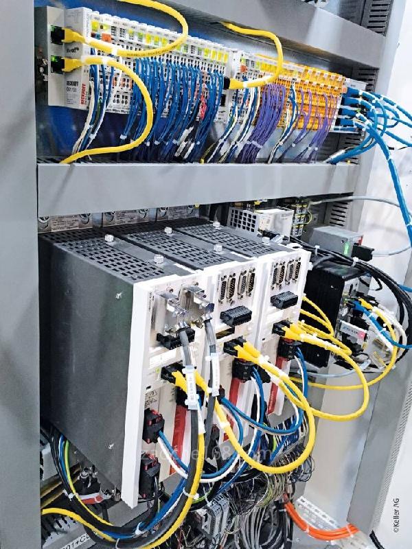 Florian Wernli 认为,EtherCAT 在数据通信方面也有很大的优势:“我们一直支持 EtherCAT 标准,我们可以使用倍福及第三方供应商提供的各种组件。另一个好处是,例如,在集成其它总线系统时,我们可以从多样化的诊断功能和开放性中获益。”他认为另一个重要的方面是可以通过各种选项减少布线工作:“我们不再需要铺设每一根电缆,这对我们来说是一个真正意义上的额外收获。除了 CP-Link 4 和 OCT 之外,EtherCAT P 也为我们提供了额外的优化潜力。在 I/O 方面,我们一直采用 EtherCAT P,即对于全自动压印机,我们采用的是 EPP 系列 I/O 端子盒。”具体来说,这些 EPP 系列 I/O 端子盒包括 1 个 EPP1004 4 通道数字量输入端子盒,5 个 EPP1018 8 通道数字量输入端子盒、9 个 EPP1809 和 2 个 EPP1816 16 通道数字量输入端子盒,以及 2 个 EPP3184 4 通道模拟量输入端子盒。