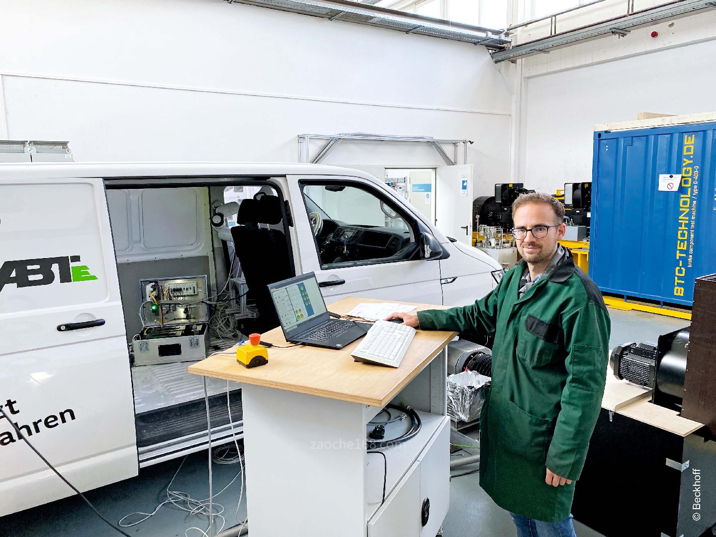 肯普滕应用技术大学的试验台正在测试一辆由 ABT 公司完成电动转型的大众厢式车