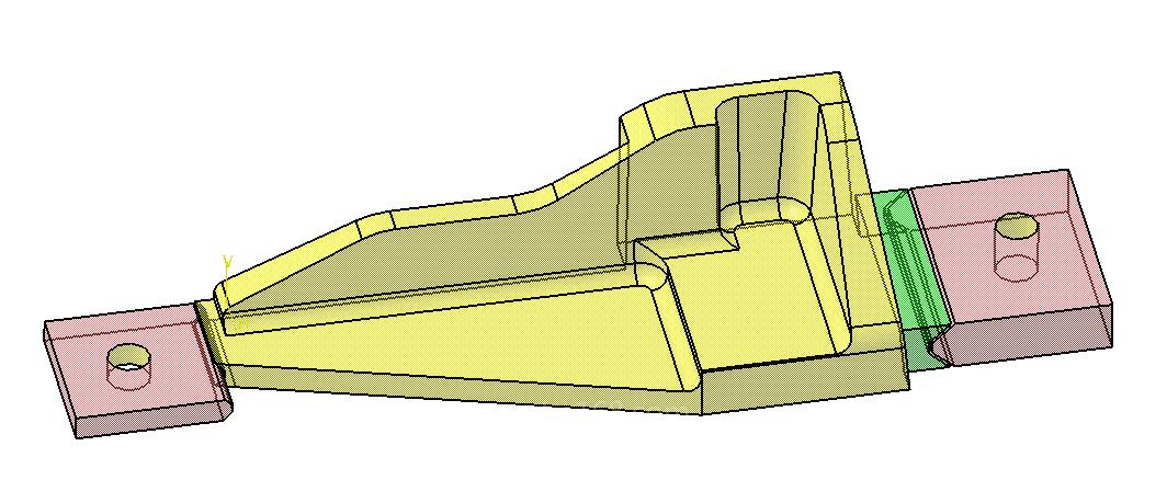 3)毛坯结构应便于装夹、加工。分析该角盒毛坯特点,两侧余量不均匀,较高一侧外形余量4~12mm,预留加工凸台最少需要3mm(压点位置)加切断凸台使用的刀具直径值,显然该毛坯余量不满足预留凸台的条件;若使用压制零件本身加工,则加工过程中需要多次窜动压板,实现铣刀的躲避,而零件自重较小,窜动压板、多次装夹必然导致零件窜动,严重影响零件的加工稳定性,存在较大安全风险;观察毛坯,不属于典型的四方或者六方零件,使用虎钳加工的可能性极低。因此,只能通过修改锻件模型或者焊接增材的方式增加工艺耳片,实现稳定、便捷的装夹加工,后续选择装夹方式时应充分考虑。
