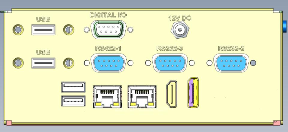 客户需求:I/O: 2 x USB, 2 x LAN, 1 x HDMI, 1 x DP;1 x VGA;4 x COM;2 x USB;1 x DIO;1 x audio;1 x DC jack