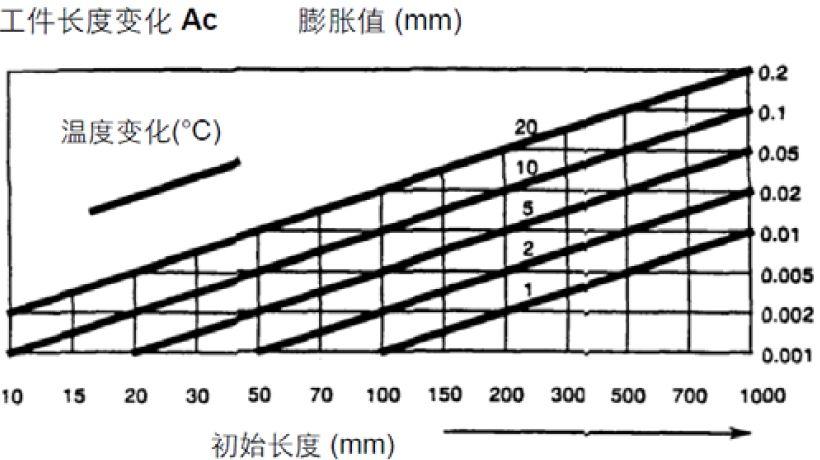 举例:工件长度:200mm;温度变化:10℃;膨胀值:0. 02mm。