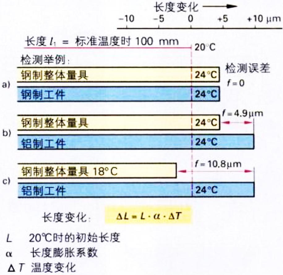 如果工件和检测使用的检测仪表以及量规使用不同材料制成,并且检测时没有处于标准温度条件下,与标准温度20°C的偏差将始终是产生检测误差的一个重要因素。