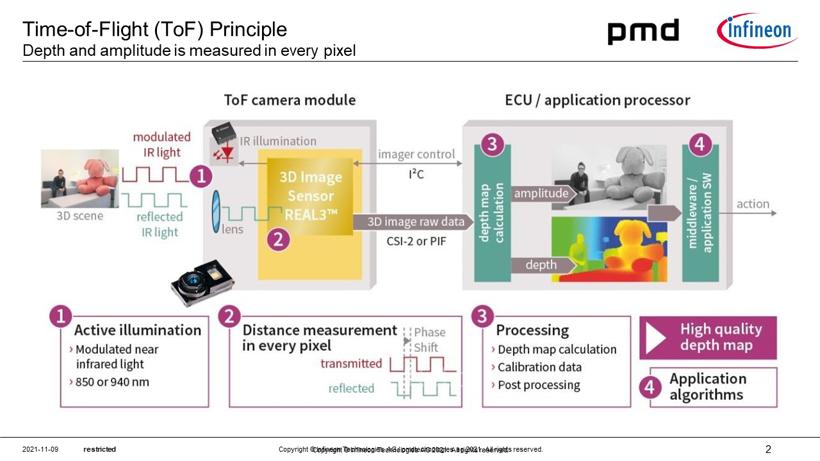 新能源汽车和智能驾驶是未来汽车行业的增长引擎,信息娱乐系统在其中发挥着重要作用。英飞凌在汽车信息娱乐领域拥有非常丰富的产品和应用,传感器是其最具有优势的产品之一。英飞凌在传感器方面拥有40余年经验,在过去10年,出货量已超过200亿颗。近期,英飞凌推出了与湃安德(pmd)合作开发的第二代REAL3™ 3D ToF(飞行时间)车用图像传感器。这款传感器体积小巧,分辨率高,符合AEC-Q100 Grade 2标准,是全球首款按照ISO26262(ASIL-B)标准开发的解决方案,更适合车内的应用场景。