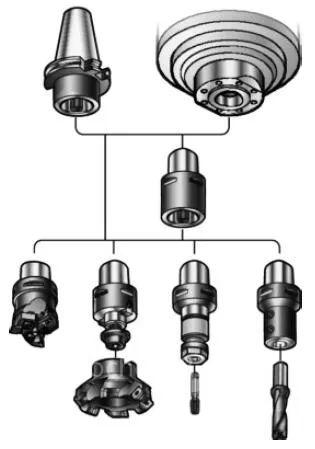在选用模块式工具系统时,要考虑模块接口的连接精度、刚度,要能满足使用要求。因为有些工具系统模块连接精度很好,结构又简单,使用很方便。如Rotaflex工具系统作为精加工(如坐标镗床用)效果挺好,但对既要用于粗加工又要用于精加工时,就不是最佳选择,在刚性和拆卸方面都会出现问题。