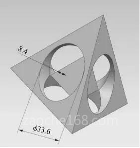 mm、深度8.4mm的圆柱孔。用类似方法加工正三棱锥第三个平面的圆柱孔。