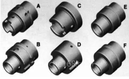按DIN的规定,HSK刀柄分为6种形式。图4为这6种刀柄的结构图,而图5为这6种型号的剖面图。