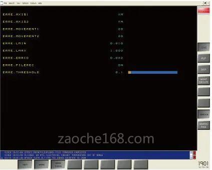 在使用ERRE测试功能时,需要进入ERRE系统界面中进行一些相关参数设置(见图1),包括以下9个主要的参数:ERRE_AXIS1、ERRE_ AXIS2、ERRE_MOVEMENT1、ERRE_MOVEMENT2、ERRE_LMIN、ERRE_LMAX、ERRE_ERRCD、ERRE_FILEREC和ERRE_THRESHOLD。