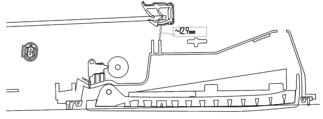 在造型阶段需要控制隐藏把手布置位置车门外板外表面与车门玻璃的Y向间隙,按照布置以及操作空间要求等经验看,间隙需要≥75mm。