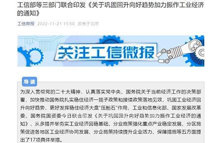 《通知》还表示,巩固工业经济回升向好趋势,良好机制是保障。在加大政策扶持力度优化发展环境方面,应促进新能源汽车等重点产业创新发展。