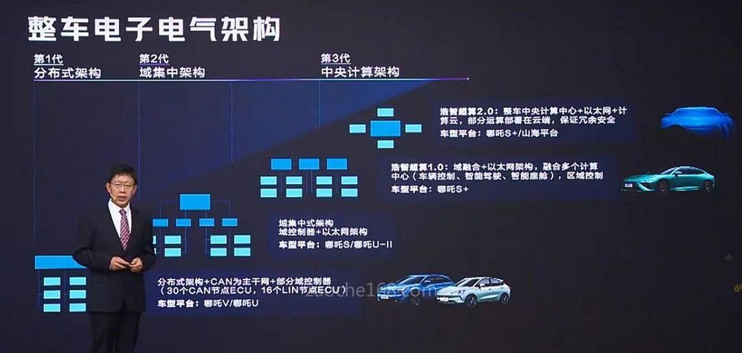 哪吒汽车此次发布的浩智中央超算平台,采用中央计算架构,具有算力强、存储能力强和接口丰富等特点。
