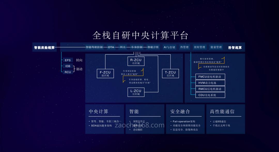 浩智中央超算平台,还具有自动驾驶、影音娱乐、车控一体化解决方案;具有深度自学习、肢体识别、语音操控;且按功能安全架构设计,满足高阶智能驾驶的安全要求;同时内置国密芯片、按照国密标准开发设计,以保证信息安全;还可结合5G TBOX实现端云之间高带宽、低延时通信,可超快OTA升级,云端深度学习与算法迭代。