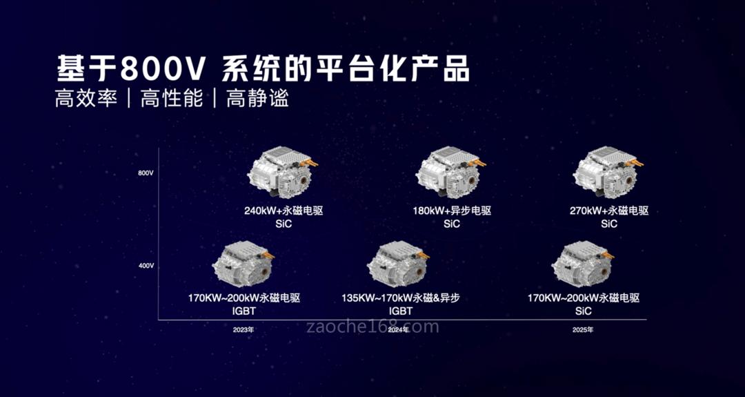 哪吒汽车已拥有完全自研、正向开发800V 碳化硅电驱系统的能力。哪吒汽车还将逐步推出中压/高压135kW~270kW永磁电驱系统和异步电驱系统,永磁系统和异步系统将进行转子的差异化设计,控制器实现模块化设计和制造。