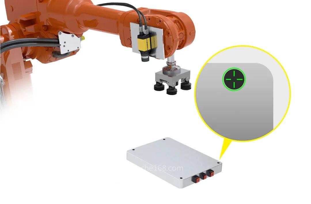 康耐视In-Sight视觉系统可通过识别以凹口形式呈现在相机面前的基准“标记”,可靠地引导和对位电池模块,将它们装配至电动车电池组系统外壳。该应用的成功取决于将基准点标定为坐标轴,使视觉系统能够定位元件。制造商可将In-Sight 8000视觉系统安装到机器人上,用于采集每个角落及其三个对位孔的图像,以计算电池模块的位置。康耐视PatMax技术可利用几何信息定位和标定基准标记。PatMax技术在各种条件下都能够保持快速、可靠和高度准确,确保其能够实现精确对位。视觉系统利用这些坐标轴引导机器人拾取底壳。然后,拾放机器人将其转移至设备的另一部分。