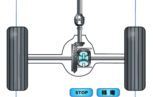 功用是当汽车转弯行驶或在不平路面上行驶时,使左右车轮以不同转速滚动,即保证两侧驱动车轮作纯滚动运动。差速器是为了调整左右轮的转速差而装置的。