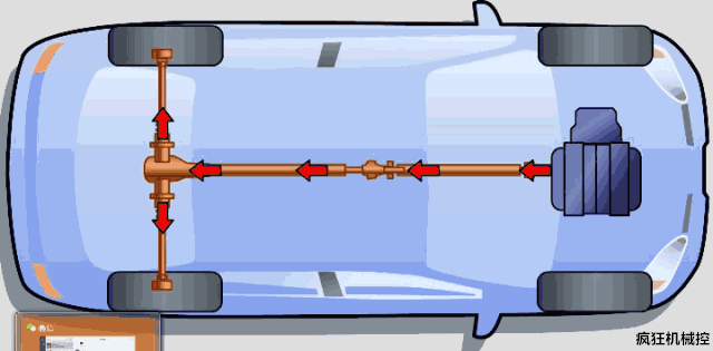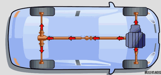 在四轮驱动时,为了驱动四个车轮,必须将所有的车轮连接起来,如果将四个车轮机械连接在一起,汽车在曲线行驶的时候就不能以相同的速度旋转,为了能让汽车曲线行驶旋转速度基本一致性,这时需要加入中间差速器用以调整前后轮的转速差。