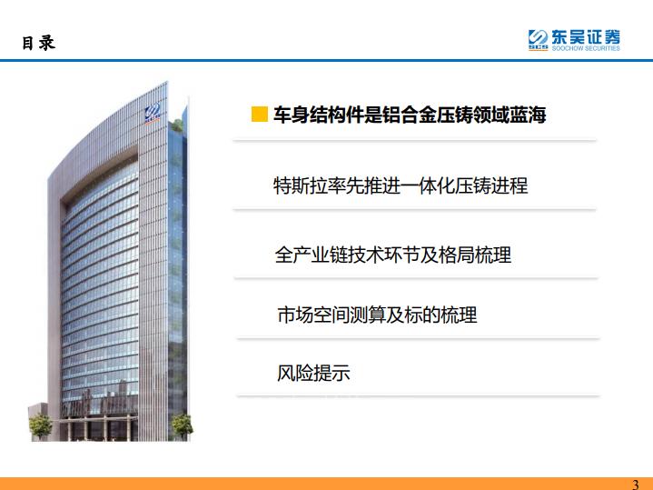 ◆汽车结构件渗透率较低,单车价值量快速提升。相较于其它铝合金零部件(中小件、三电系统、底盘悬挂),汽车结构件单车价值量最高(单车1万元以上),渗透率最低(燃油车3%,纯电车8%),具备最大的远期市场空间。