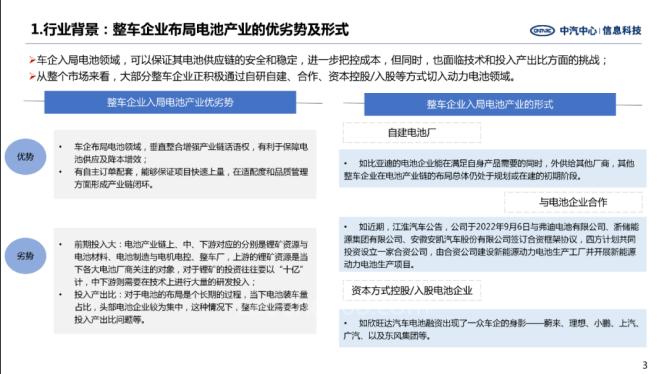 行业背景: 整车企业布局电池产业的优劣势及形式