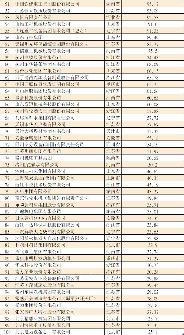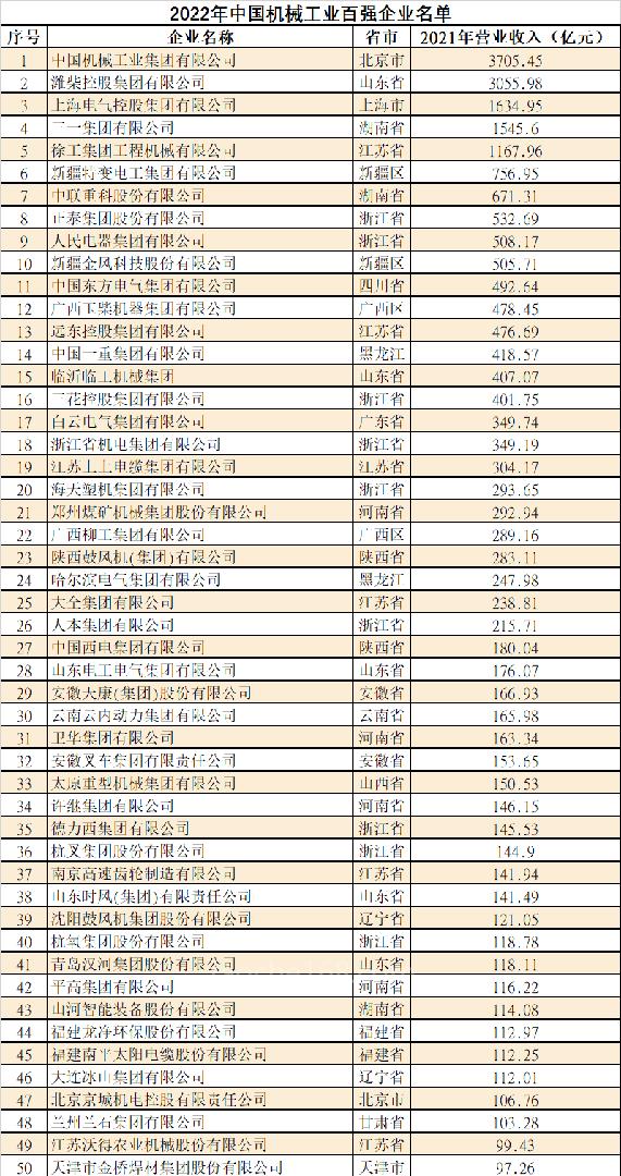 2022年中国机械工业百强企业名单