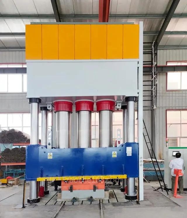 1200吨汽车零部件液压机,特别适用于厚板零件的冲压和拉伸翻边。在弯曲过程中,液压系统采用两通插装阀,具有空程速度高、压力动力可调等特点,是拉伸板件的理想设备。电气系统的选择PLC操作简单可靠的程序控制器,可根据客户需要设计四柱和框架。