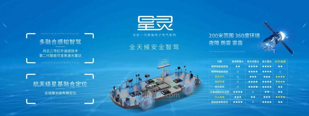 在第三代电子电气架构EEA 3.0基础上,星灵架构通过风云三号红外遥感技术、第二代智能可变焦激光雷达、航天级星基定位融合等多项全球领先技术,针对智驾安全进行了全面升级。